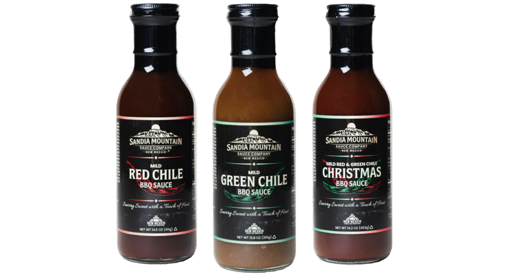 New Mexico friends try this incredible BBQ sauce! Its a little tangy sweet with a small kick (not hot) of chile. You can taste the chile zip but you don’t have to worry about it being too spicy.”Savory sweet with a touch of heat” as it says on the bottle. You can get it in red, green or christmas (I have all three thanks to my brother and sister in law).
